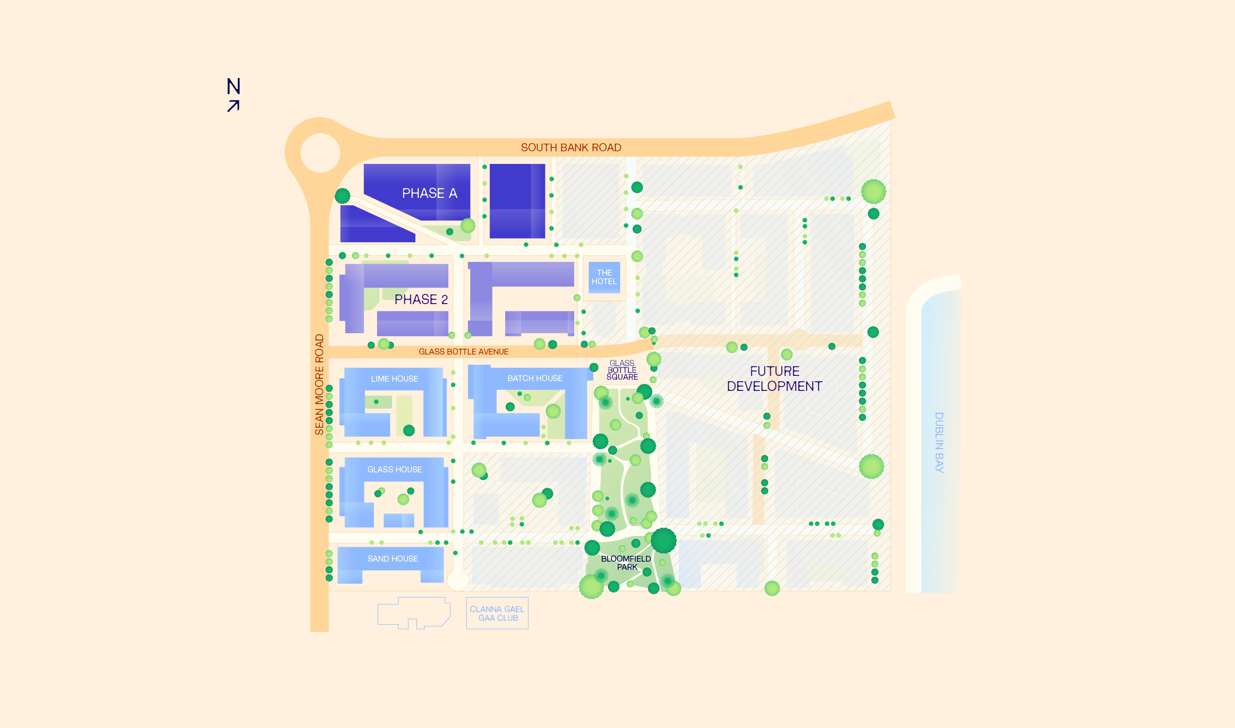 The opening act of Glass Bottle. 212 thoughtfully designed homes surrounding a landscaped courtyard, with ground-floor amenities and rooftop terraces overlooking Dublin Bay.